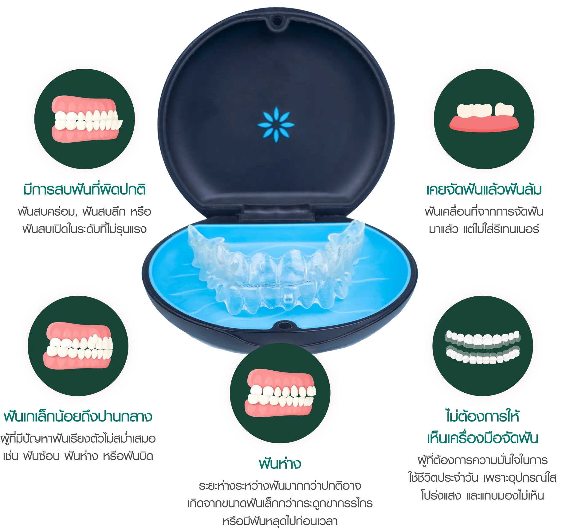 เปลี่ยนเครื่องมือจัดฟันใสตามแผน ติดตามผลสม่ำเสมอ และใส่รีเทนเนอร์ หลังการรักษาเพื่อคงสภาพฟัน